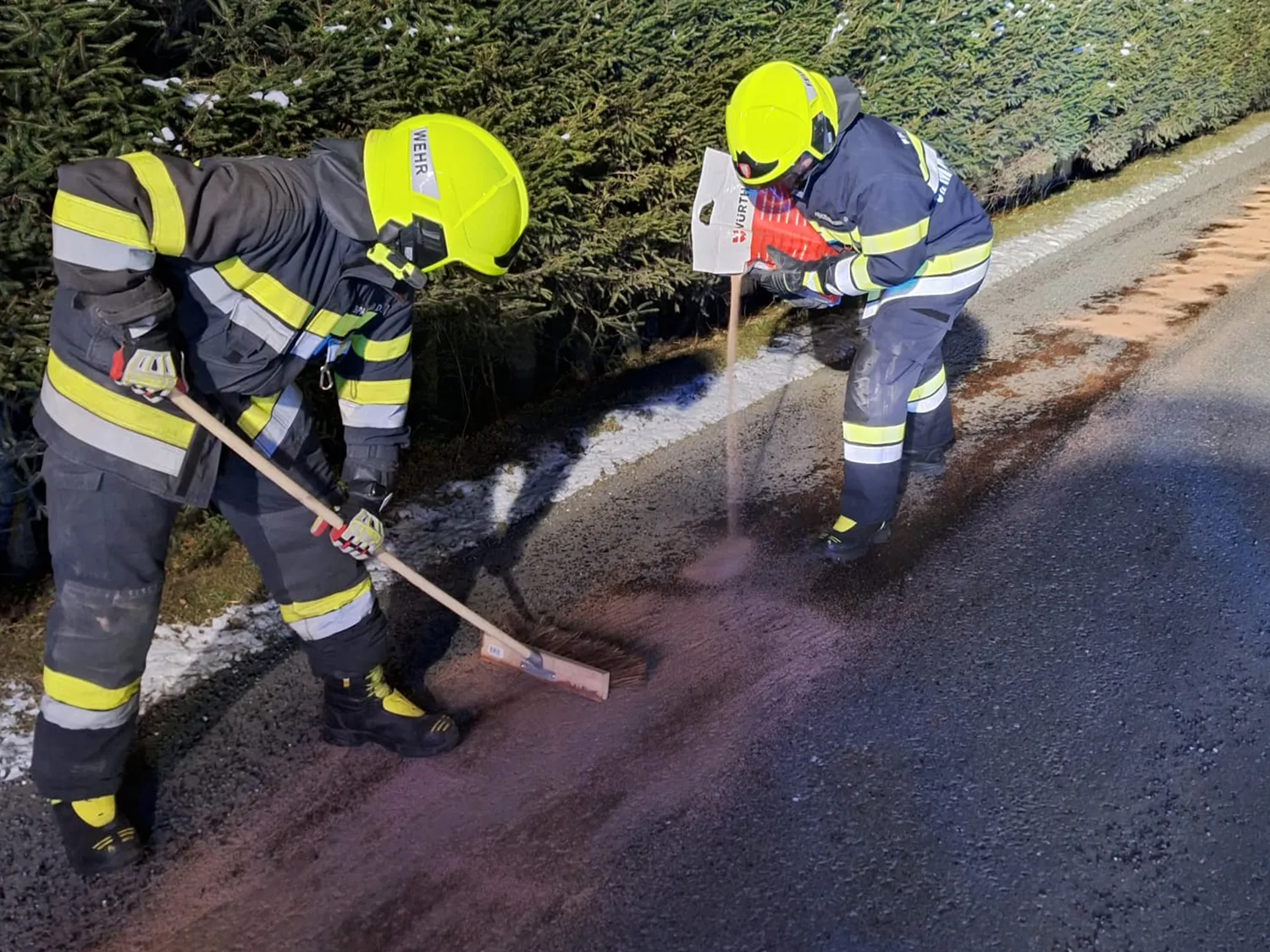 Vor Ort wurde die Einsatzstelle abgesichert und die ausgetretenen Betriebsmittel mittels Ölbindemittel großflächig gebunden. Außerdem konnten noch auslaufende Stoffe aufgefangen werden.