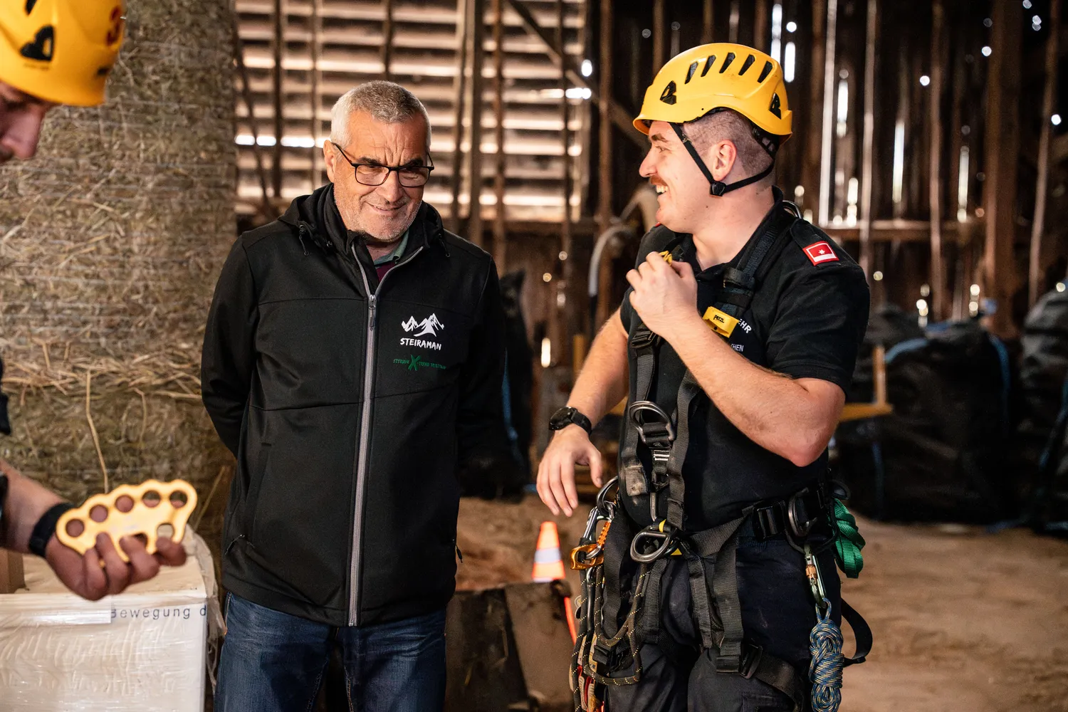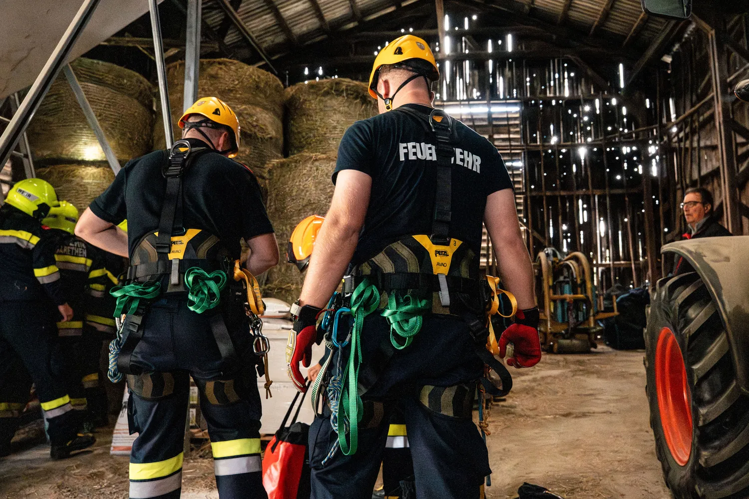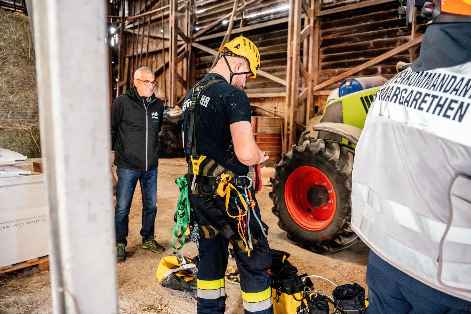 Parallel zu den Löscharbeiten wurde ein zweites Szenario abgearbeitet: Eine verunfallte Person musste von der MRAS-Mannschaft der Feuerwehr St. Margarethen bei Knittelfeld aus einem Heukran gerettet werden. Zusätzlich kam das Heuwehrgerät zum Einsatz, um einen überhitzten Heustock abzusaugen und eine mögliche Selbstentzündung zu verhindern.