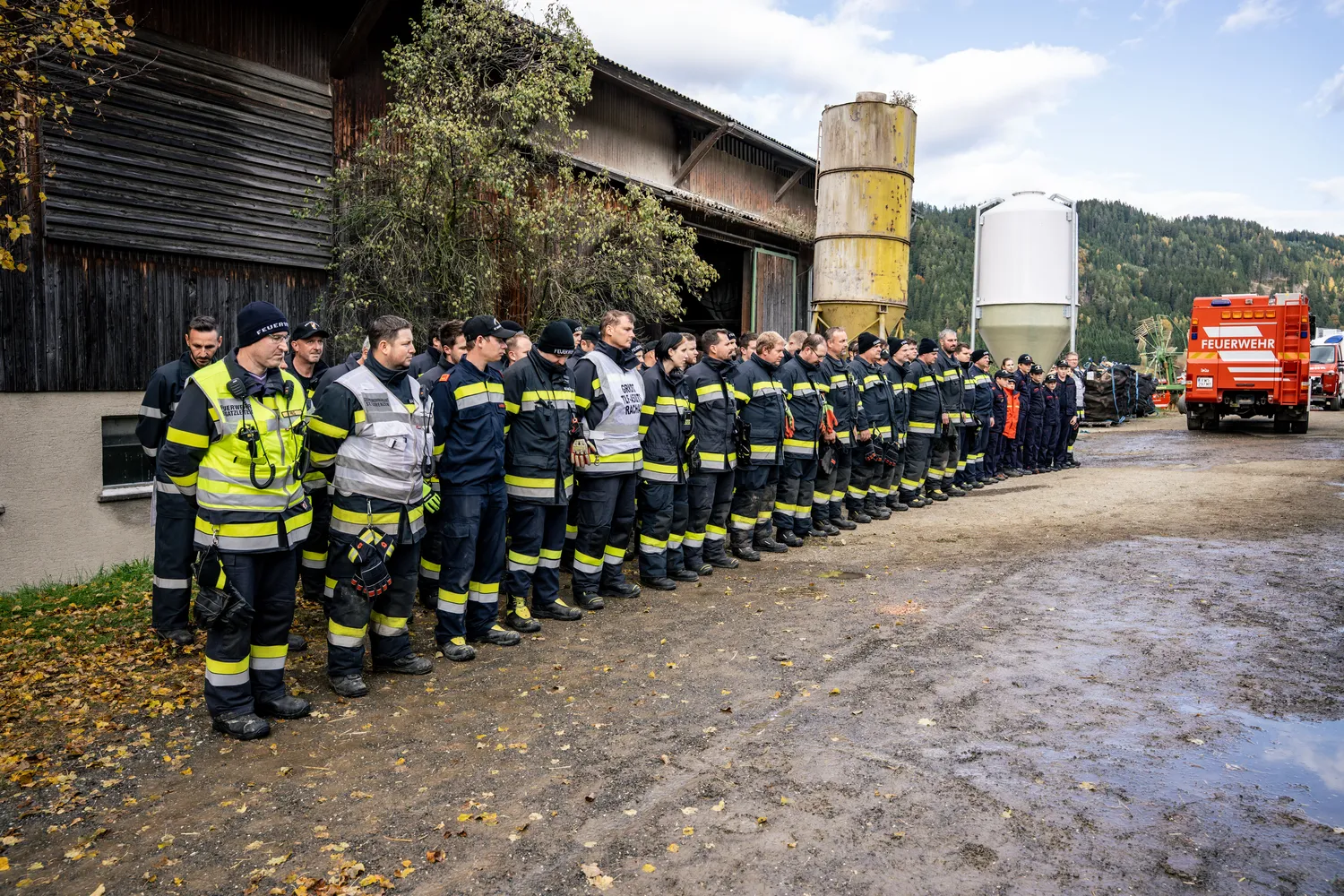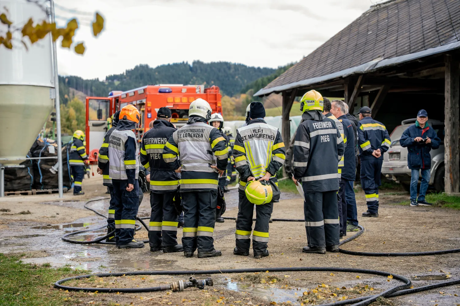 Realitätsnahe Einsatzbedingungen forderten am 18. Oktober 2025 die fünf Feuerwehren der Gemeinde St. Margarethen bei Knittelfeld bei der diesjährigen Ortsschlussübung am Anwesen der Familie Leitner in Preg. Insgesamt nahmen 75 Feuerwehrmänner und -frauen an der umfangreichen Übung teil.
