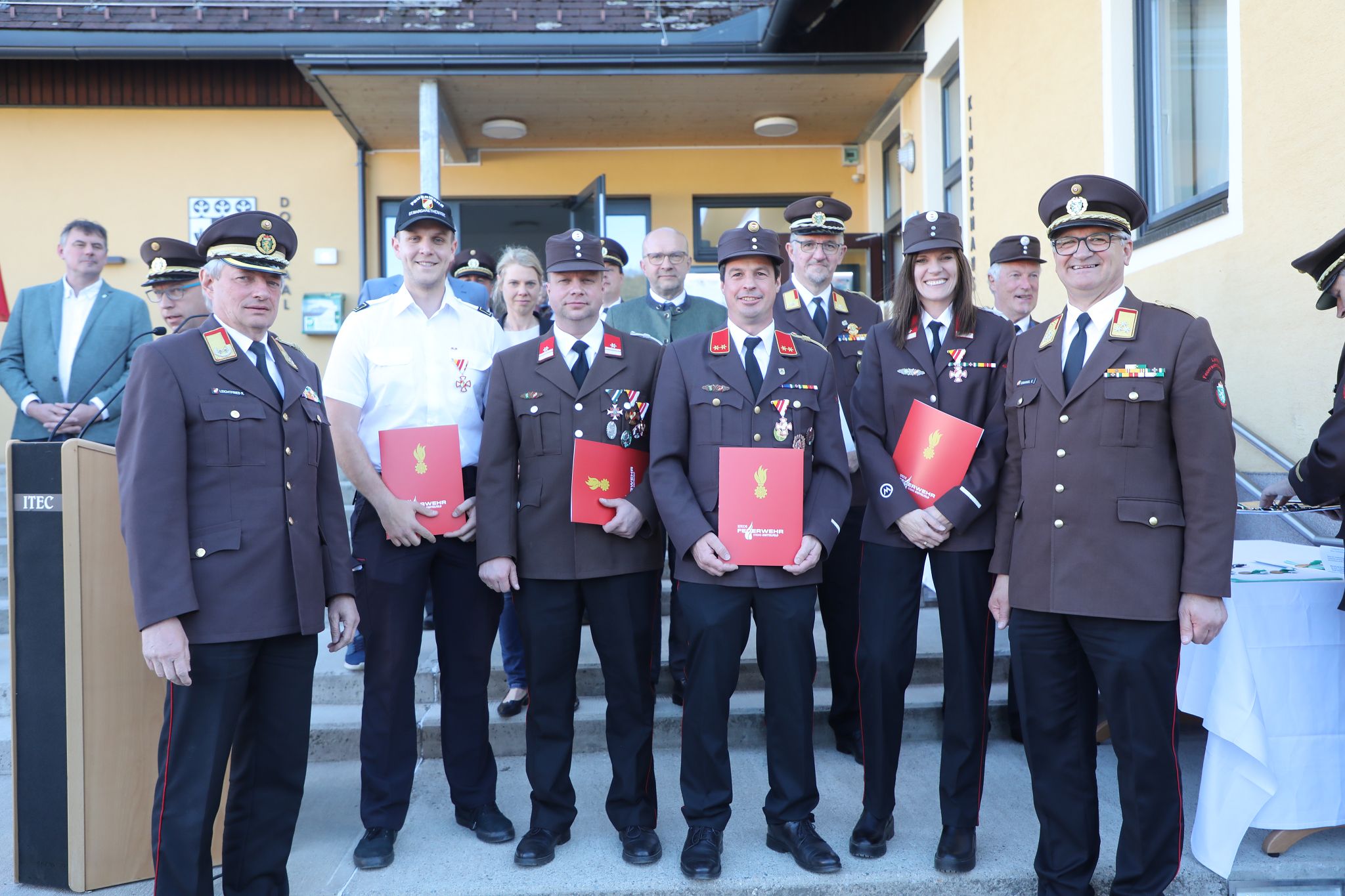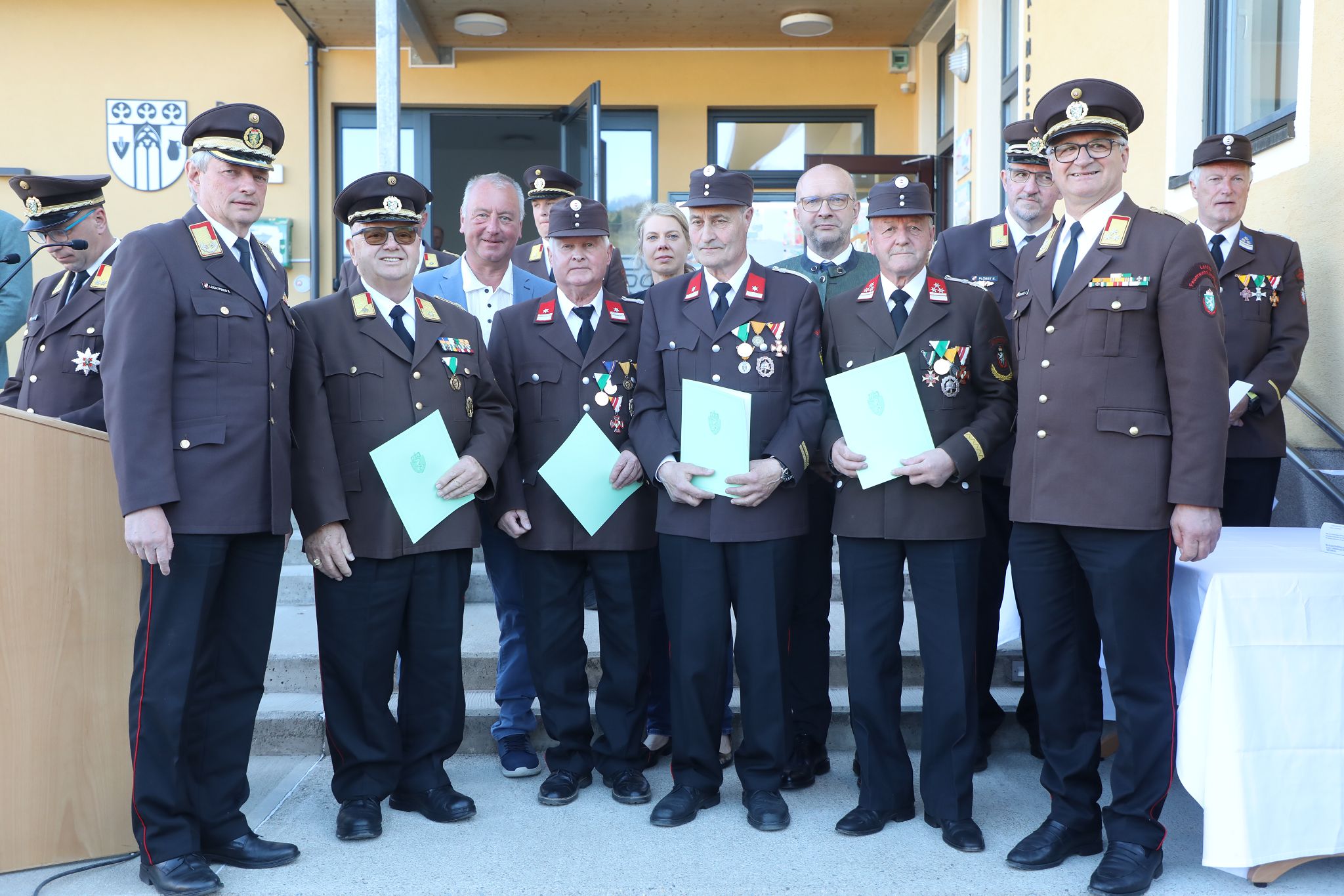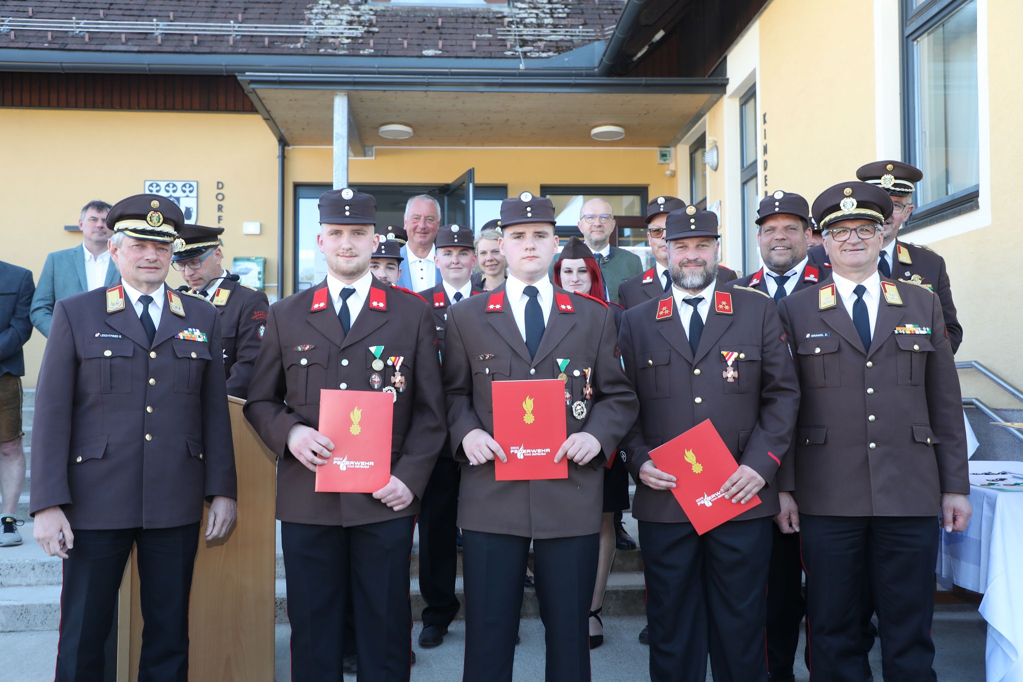 Aus den Reihen unserer Wehr wurden mehrere Kameraden ausgezeichnet: das Verdienstzeichen des BFV Knittelfeld in Bronze erhielten OLM Daniel Steinberger und OFM Markus Steinberger, in Silber BM Armin Mayer und BI d. S. Daniel Spannring. Für 50-jährige Tätigkeit im Feuerwehrwesen wurde EABI Johann Neumann geehrt.
